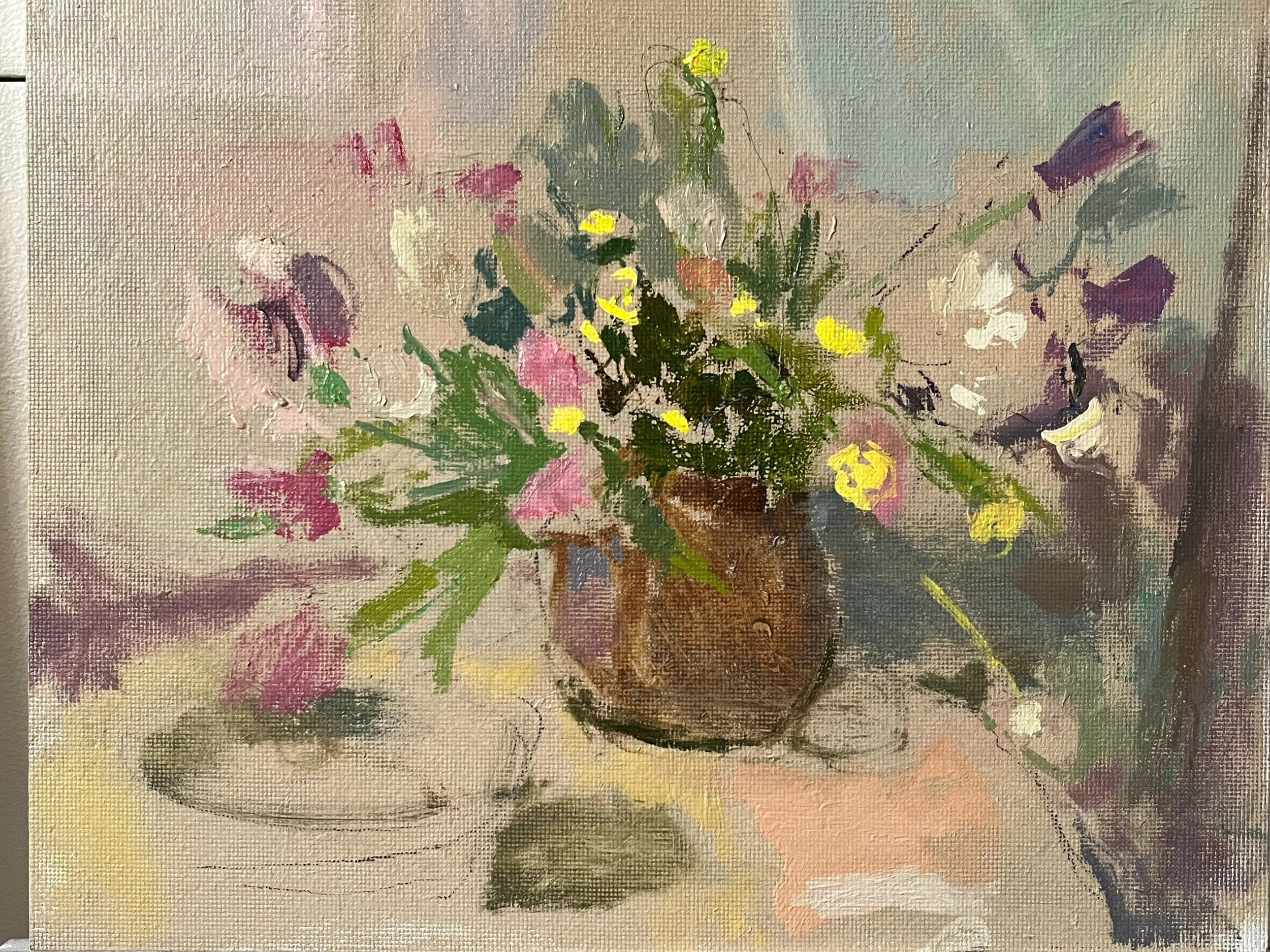 Paintings 2 Small floral, 2026 Still life with white flowers Hellebores Art class Floral Small floral Floral study Path in the snowy woods Jessica by the sea Still life with yellow flower Sold out